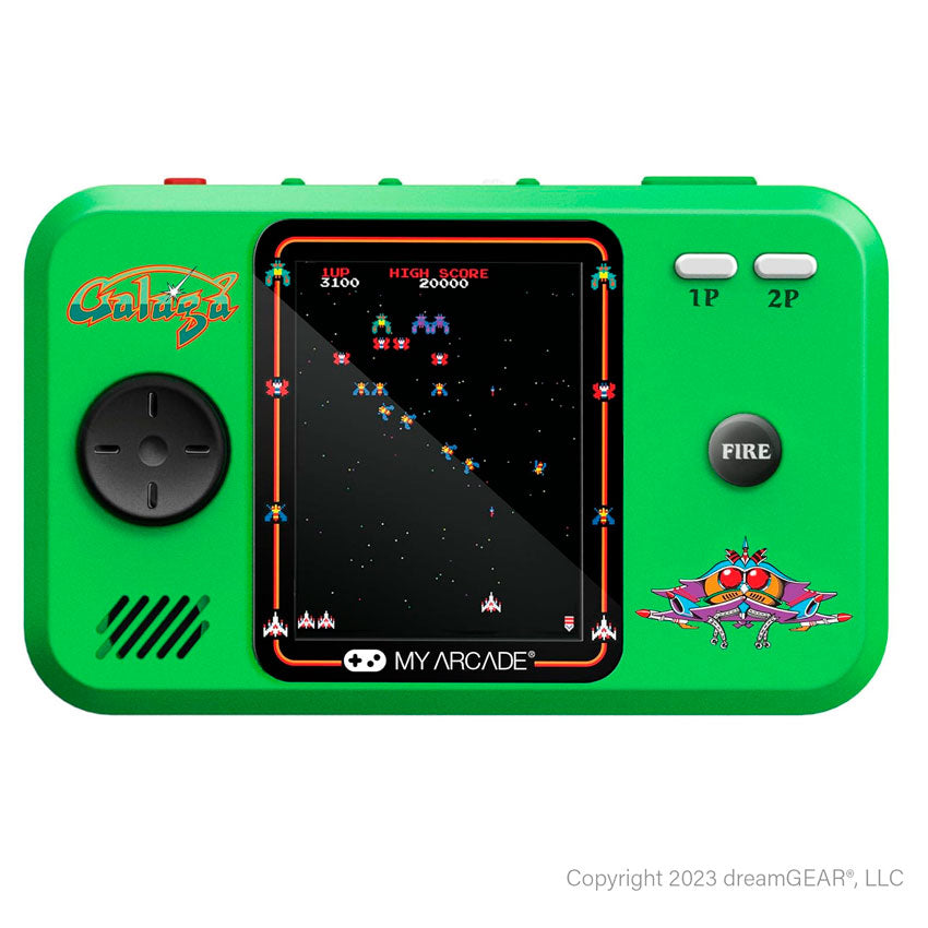 - Vive la emoción del clásico arcade con la consola portátil DreamGear Galaga Pocket Player Pro. Este sistema incluye los juegos Galaga y Galaxian, ambos con licencia oficial y totalmente jugables, ofreciendo la experiencia completa de combate espacial retro en un formato portátil.