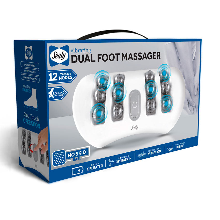 - Disfruta de un cuidado completo para tus pies con el Masajeador de Pies de Doble Función Sealy.